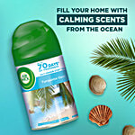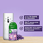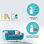 Airwick Freshmatic Life Scents Refill - Hills of Munnar and Turquoise Oasis, 250ml each. Bring home a whiff from the hills of Munnar, with the soothing touch of Lavender & Lotus that gives a feeling of relaxation through the day. Air Wick Freshmatic freshener adds charm to your home by inducing fragrances in the air instantly. The Air Wick Freshmatic device automatically releases bursts of continuous fresh fragrance, so that your home always smells beautiful. One box consists of 1 device, 1 refill and 2N Alkaline batteries. It provides up to 60 days of fragrance (on low setting on the device). Use device along with Air Wick refills (250ml) only to avoid any damages.