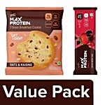 Oats & Raisins 7 Grain Breakfast Cookie - No Maida, Healthy Snack:Protein Blend (24%) (High Protein Peanut Flour, Whey Protein Concentrate, Wheat Protein, Soy Protein Concentrate), Edible Vegetable Oil (Bakery Shortening), Invert Sugar, Millet & Pulses Blends (Wheat Flour, Oats Flour, Quinoa Flour, Bengal Gram Flour, Ragi Flour, Corn Flour, Amaranth Puff), Dietary Fiber (Fructooligosacharide), Corn Flakes (6%), Black Currants(4%), Golden Raisins (4%), Butterscotch Pieces, Condensed Milk, Sugar Powder, Humectant (Glycerine), Tribasic Calcium Phosphate, Leavening Agent (Baking Soda), Binding Agent (Gum Acacia, Xanthan Gum), Emulsifier (Ins471 Ins472e), Salt.