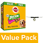 Celebrate Rakhi with a special combo for your pet. Pedigree Biscrok Biscuits in Milk & Chicken flavour (900 g) offers a delicious and nutritious treat for your furry friend. Paired with the eCraftIndia Dog Design Pet Rakhi, this combo adds festive joy and love to your pet's day, making it the perfect Rakhi gift to show your care and affection.
