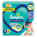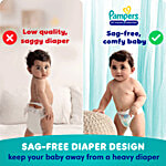 Pampers baby-dry pants style diapers are the only pants in India with new air channels providing your baby with the comfort of dryness overnight. It comes with a magic gel that locks wetness away for up to 12 hours of dryness.