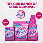 Only laundry detergents are not enough for removing tough stains, and stains often remain on clothes even after a wash with the best of detergents. Vanish is an expert laundry additive that specializes in the removal of tough stains in only 1 wash with its active oxygen formula. It also whitens your whites and brightens your coloured garments with its active brighteners to give you dry-cleaning-like results for your everyday clothes. Available Variants: Vanish Liquid- 180ml, 400ml & 800ml; Vanish Powder - 100g, 200g, 400g.