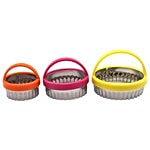 Get creative while baking with Yangli three-piece scalloped edge cookie cutter which will help you get the desired shape of biscuits and cookies. It is made of plastic and stainless steel, which is durable and lasts for a long time. It is a must-have for every baking enthusiast.
