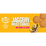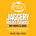 This product is recommended for little ones who are ready for all grains and nuts. Best if they have 1-2 teeth to chew. If not, you can always dip it in milk to help them bite. This is a freshly made organic dry fruit jaggery cookie with the goodness of pure butter and 100% whole wheat. The freshness is so good and also, the little children need to be fed fresh foods for maximum nutrient absorption, just like how your grandma or mom fed you as a child. It is made from organically certified whole grains and 0% maida. No baking powder, no soda or raising agents, no egg, 0% sugar, sweetness from organic jaggery and dates. Also, no hydrogenated fats, and it is made from pure cow butter. No preservatives or artificial flavours are added.