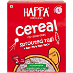 This blissful combination of Sprouted Ragi, dried Mango Powder and dried Banana powder will make your little muppet’s meals even tastier and healthier. This delicious and healthy combination is a blend of power-packed vitamins and minerals essential for your child’s overall development. Happa Oragnic mighty grain range offers a wholesome and easy to prepare porridge mix which is a nutritious baby staple. It contains high amounts of proteins, calcium, and iron and is gluten-free, low in fat, easily absorbable and easily digestible. Combined with the goodness of mango which contain a high amount of Vitamin C needed to strengthen the immune system and a healthy dose of potassium-rich banana powder that acts as a natural sweetener, Happa ragi mango banana porridge is suitable for everyday feeding of your little one. This organic sprouted whole grain fusion with fruits mix from Happa’s mighty grain porridge range can be the perfect little spoon of solids to your growing child. But, be sure to consult your paediatrician before you introducing porridge mix in your little moppet’s early food.