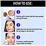Blue Heaven Flawless Finishing Powder, beauty secret and photo focus. Blue Heaven Flawless Finishing Powder Glides Over Your Skin for a translucent veil that keeps cosmetics intact all day long & feels feather soft. It is an oil-free product with oil-absorbing ingredients that creates a matte look & give a natural finish.