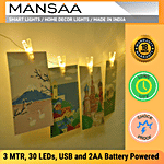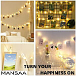 Mansaa brings to you LED Photo Clips of Fairy String Lights. Bring home these bright and festive lights from Mansaa to give your home the beautiful look it deserves. This 30 LED warm white light comes with an adapter. String lights can be used anywhere for Decoration. The cute star-shaped design can bring you unexpected beauty. These long-lasting and energy-efficient lights provide an attractive glow to light up your home. The LED bulbs are equipped with a transparent clip that can nip photos or other small Items creating excellent illumination and a warm atmosphere. Ideal to be used in living rooms, bedrooms, balcony, terrace, kitchen, garden.