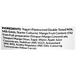 Yogurt: (Pasteurized Double Toned Milk, Milk Solids, Starter Cultures), Mango Fruit Content (5%) from fruit preparation (Totapuri Mango Concentrate, Totapuri Mango Dices, Sugar, Water, Apple Juice Concentrate, Stabilizer (INS 1422), Antioxidant (INS 300), Acidity Regulator (INS 330), Colouring Concentrate Yellow Carrot)Contains Permitted Natural Colour And Added Flavours (natural Flavouring Substances)Added Active Live Cultures: S.Thermophilus, L.Bacillus Delbrueckii Subsp. Bulgaricus