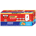 Mortein insta 5 plug-in mosquito repellent comes in a handy liquid vaporizer format that offers complete protection from dengue-causing mosquitoes. Formulated with active ingredients, Mortein vaporizer is a powerful and convenient solution to offset mosquitoes and serve as the first line of defense against potential diseases and health hazards. Mortein insta 5 mosquito repellent, as the name suggests, is effective in killing mosquitoes immediately, typically within 5 minutes of plug-in. The refill bottle fits all devices (except good knight express). Moreover, Mortein device has a superior heating system that ensures low electricity consumption and the dual-mode machine with high and low-intensity modes, makes sure you and your family stay protected always. Liquid vaporizer bottle shall last for 45 nights in approved use of 8 hours per night.