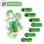 Would you believe us if we told you the answer to the perfect combination of mess-free cleansing, tick-repelling, and soothing aromatic shampoo to keep your doggo stress-free is literally at your fingertips? Yes! Papa Pawsome’s Tick Off Waterless Shampoo, made with natural bio-actives, has your doggo’s optimal comfort in mind and provides instant relief against ticks and infections. Our shampoo conditions and moisturises the coat, making it healthier and resistant to rashes or irritation.