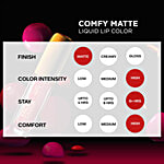 A liquid lipstick that stays for long and feels comfortable at the same time, doesn’t feel real? Faces Canada is making a promise no one has ever dared to make. Faces Canada Comfy Matte Lip Color - A liquid lipstick that renders an intense matte finish that won’t budge for up to 10 hours. A groundbreaking product when it comes to liquid lipsticks, the Comfy Matte Lip Color is infused with lip-loving ingredients, Almond Oil & Vitamin E to keep your lips hydrated while the lipstick leaves behind a beautiful matte pout. Faces Canada Comfy Matte Lip Color is the perfect balance of natural ingredients and Paraben, Alcohol-free. Voted the most comfortable matte lipstick, Faces Canada Comfy Matte Lip Color will give you the best of both worlds, long wear & comfort. Available in 12 head-turning shades that will look amazing on all skin tones, it is a challenge that this lipstick will become a favourite from the moment, you try it.