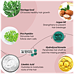 With High-Performance actives - Pea Peptide Protein & Hydrolyzed Keratin, it strengthens hair follicles to reduce hair fall & breakage. Gives hair a boost of volume and adds fullness. With 90% Naturally derived ingredients like Argan and Moringa seed, it deeply nourishes and revitalizes to give fuller voluminous glossier hair.