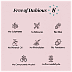 No sulphates, silicones, parabens and other nasties, this Clean Haircare is Free of dubious 8: - NO Sulphates (SLS, SLES Free) - NO Silicones -NO Phthalates - NO Parabens - NO DEA -NO Mineral Oil -NO Denatured Alcohol - NO Formaldehyde GMO-Free. Cruelty-Free. Dermatologically Tested and Safe for use. Results in stronger, healthy hair which looks fuller and glossier.