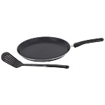 Nouvetta Veneto Non-Stick TaWa is made with high quality aluminium material, which helps in even distribution of heat. It is an ideal cookware for any kitchen. It is easy to clean, wash and is long lasting. This cookware is used for preparing and cooking food. It doesn't burn food and retains essential minerals in food as it has a non-stick coating. Tawa is used to make dosa, chapatti, roti, paratha, etc. It has a comfortable elegant matte finish handle which makes it easy to carry and handle. It is compatible with both gas stoves as well as induction.