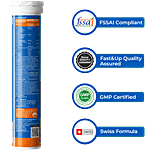 Fast&Up Reload Probiotics is India’s First Effervescent Probiotics drink with added Electrolytes which restores the Probiotic-Electrolyte balance of the body and Promotes Good Digestion and Good Gut Health. It prevents dehydration-induced diarrhea and maintains the fluid balance of the body. The added Probiotic is Bacillus clausii which is a scientifically researched probiotic strain added in the optimal concentration of 2 billion CFU. The concentration is proven to be effective in maintaining a healthy gut microbiome balance. It improves digestion and improves nutrient absorption through gut. It Helps Prevent GI stress due to intense workouts and prevents constipation, bloating, gas, and indigestion. Bacillus clausii has also been shown to prevent the gut from ill effects of Antibiotics. Fast&Up Reload Probiotics provides a 3-way benefit by helping in providing Instant Hydration, Improving Digestion, and Enhancing the Immunity. It contains 5 Vital Electrolytes - Sodium, Potassium, Magnesium, Zinc & Chloride which help restore electrolytes lost via sweat and helps Prevent Dehydration. It is made with Swiss Effervescent Technology for faster and better nutrient absorption. It is 100% Vegetarian, Banned Substance Free, contains low sugar, contains no Artificial Colors, and is Gentle on the Stomach. It comes in a Tangy Orange flavor which is very refreshing. Just Drop Fizz Drink. Drop one tablet in 250 ml of water, wait till it dissolves completely and drink. You can consume this hydration drink anytime during the day or during your workout or during any GI issues.