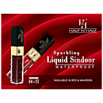 Half N' Half highly pigmented liquid sindoor featuring a rich and long-lasting colour. The formula is smudge-proof, crease-proof and quick drying. Post applying, this water-resistant sindoor sets to a velvet matte finish. The long sponge-tip applicator makes application a breeze. Suitable for all skin types.