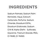 Sodium Palmate, Kemelate, Aqua, Calcium Carbonate, Fragrance, Sodium Chloride, Glycerine, Disodium EDTA