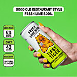 Fresh Lime Soda! The Good Old restaurant style Sparkling Lemonade takes you back to your childhood days! The touch of zing for rebels who like to squeeze the day, serve it chilled or add to desired spirit.