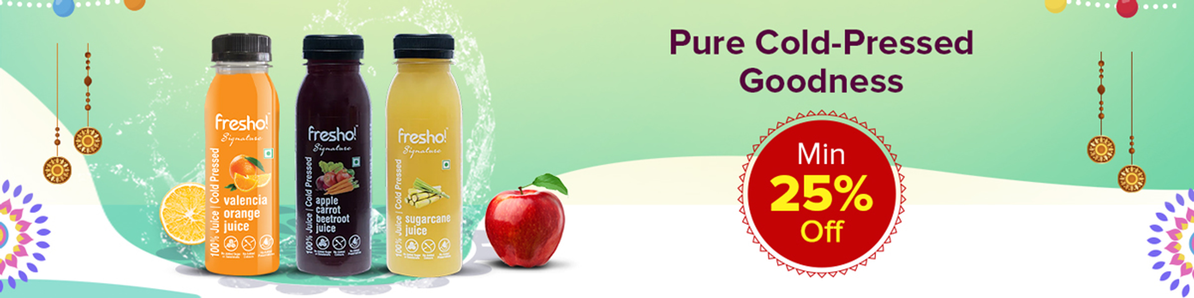 Sudden visits from friends and family can leave you high and dry, so stock up on squashes and juices that are easy to just mix up and serve. If its Fruits drinks and Juices you love, you can take your pick from the wide ranges from Tropicana, Real, Frooti, Maaza and all the brands of soft drinks. Express delivery when you really need it We’ve made online shopping so easy for you, you can always count on us in any situation, be it saving your precious time for other more important things or saving you from emergency situations when you can’t leave your home. bigbasket offers delivery in Delhi, delivery in Mumbai and delivery in major cities too.