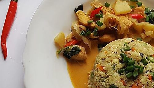 Cauliflower Fried Rice with Chicken & Sweet Potato Stew