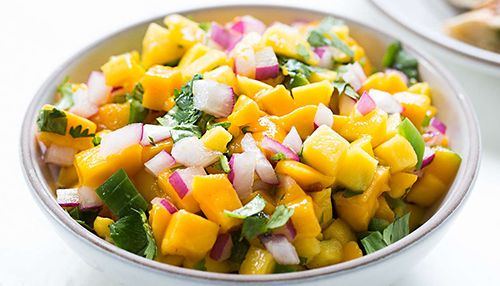 "Tantalising your taste buds, this recipe is an anytime appetiser wherein you can enjoy the tingling flavour of mango along with a side dish of any crunchy snack."