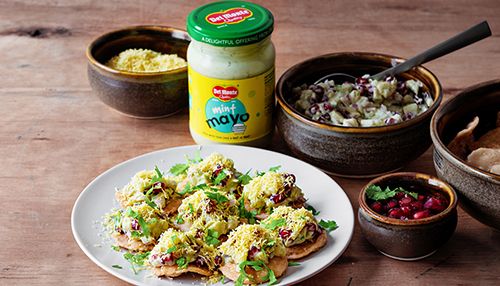Bring the taste of Mumbai street food right into your kitchen for your kid, try this Potato Pomegranate Mint Mayo Sev Puri with Del Monte Mint Mayo