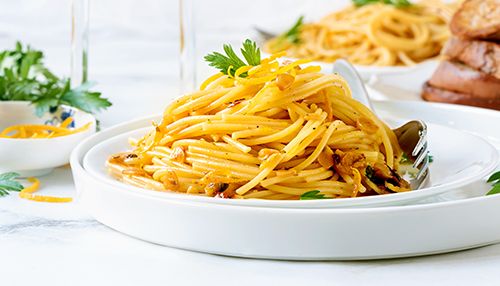 Freshness of orange when blended with sautéed garlic, tastes heavenly. Toss the spaghetti in it and relish it warm or cold. Can’t believe it? Try yourself and you will be lost in a gamut of flavors.