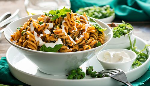 Spirali with Spinach and Peas in Creamy Tomato Sauce