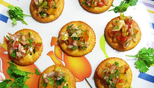 This is a super easy, quick and healthy recipe which involves placing toppings on a biscuit. Have it as a starter or snack item with tea or coffee. Kids especially love it!