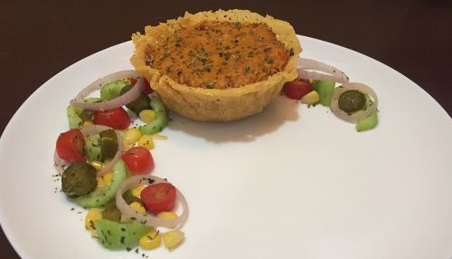 This classic Italian dish provides the perfect blend of richness in taste and nutrients. It consists of a parmesan basket, stuffed with freshly made lasagne sheets. These are layered alternately with home-made marinara sauce and seasoned cheddar cheese with an accompaniment of vegetables tossed in vinaigrette.