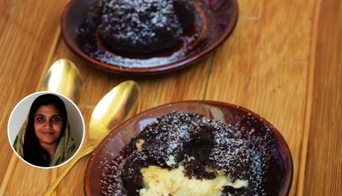 Molten chocolate lava cakes can be easily prepared at home with a healthy twist. Here, wholewheat flour chocolate cupcakes are made with cane sugar. Indulge in this sweet treat totally guilt free and enjoy the creamy and luscious white chocolate that oozes out once the cake is pricked!