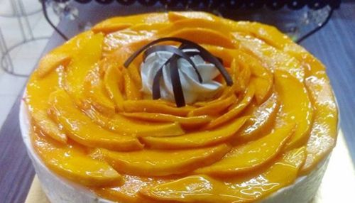 A rich melt-in-your-mouth cheese cake that is flavoured with chocolate and mango.
