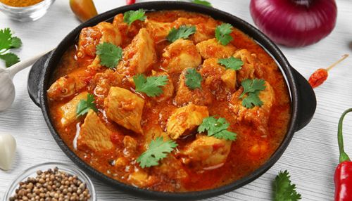 Gravy based spicy chicken curry to be enjoyed with roti or rice.