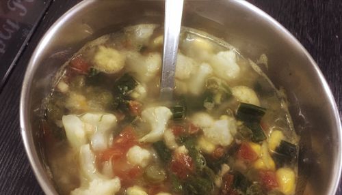 Healthy and tasty soup made with garden fresh vegetables. The flavour of burnt garlic and chilli gives it a uniqueness similar to that of the quintessential Chinese soups sans the sauces.