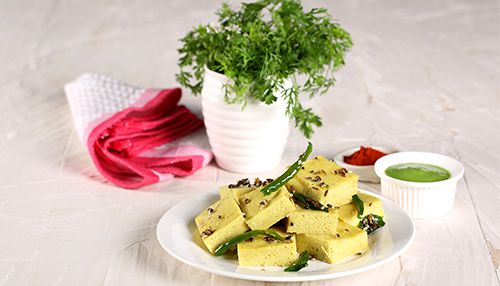 Dhokla, also known as Khaman dhokla, is a fluffy and spicy traditional Gujarati dish. It is popular dish and can be eaten for breakfast, main course, as a side dish or just as a snack.