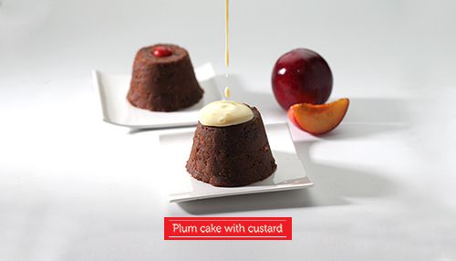 This festive season indulge in the yummy flavors of Plum Cake with Custard.