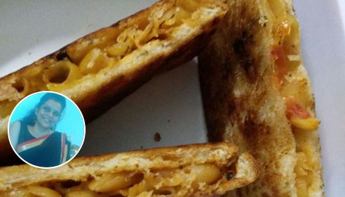A mouth-watering macaroni cheese sandwich that is crispy on the outside and soft on the inside!