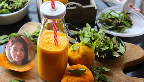 Mango is a fruit loved by everyone while orange is a tangy, delightful citrus product of nature. Mint is known for its refreshing, body-cooling and medicinal properties.When all these three are blended together, along with pumpkin seeds and oats, into a power-packed smoothie, how can it not be decadent? Make this healthy smoothie your go-to summer refreshment.