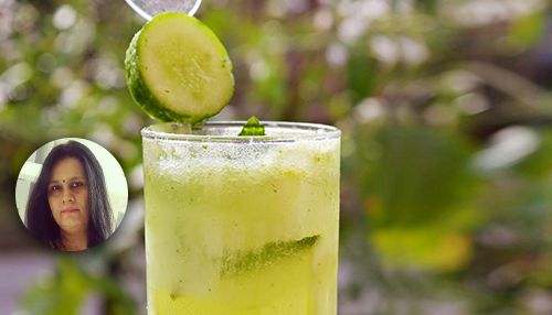 In summers, we always look for something cool and refreshing. I remember, my mom used to give us cucumber with salt and lemon whenever we were travelling, so that we could beat the heat and stay cool. This drink is inspired by my mom's way of keeping us cool. It has all the freshness of mint, cucumber with a sweetness of sugar and a tinge of lemon to stay fit and chill.