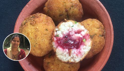 Enjoy a healthy yet interesting cutlet that is a mix of South Indian and fusion flavours. It is perfectly complemented by a wholesome ragi drink!
