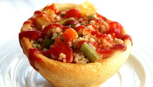 Place the dough disc on the bottom of each cups, stretching it gently to fit. Cover with greased plastic wrap and let it rise in a warm place for half an hour. Preheat oven to 180? or 350?.