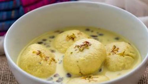 It is an Indian sweet dish. Small balls of sweetness dipped in saffron and milk.