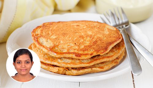 An egg-less, vegan and calorie conscious healthy pancake for breakfast!