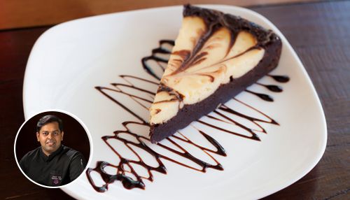 Blend in cream cheese, eggs, jaggery powder and vanilla extract. Spread the mixture over the brownie crust layer.