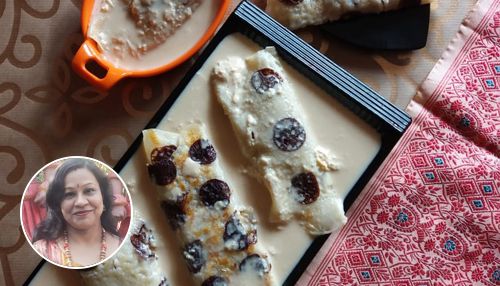 It's a very delicious Bengali sweet dish, that is stuffed with coconut & khova mixture & dipped in thick milk.