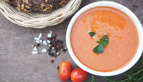 This Tomato Soup does not have onion or garlic in it, it is tasty even without these ingredients.