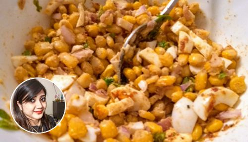 Egg and Sweet Corn Chaat is a healthy evening snack that can be served during high tea or can be savored alone. It is rich in protein and hence is recommended for those on a diet regime.