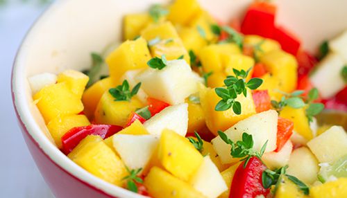 Mango season is here, give this salad a try and make a different delicious dish out of it. This colorful dish can be used as a side for chips or can be just served as it is for parties.
