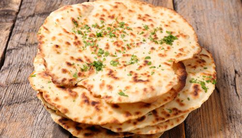 Butter Garlic Naan is similar to that of a roti, it is made of maida and is usually had with gravy dishes.