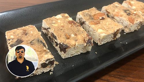 Granola bars are not just rich in protein but also rich in carbs,fat and preservatives. Here is a super healthy recipe made from oats loaded with nuts without any added sugar and oil. This office snack is filling, tasty and healthy. The shelf life is around 6-7 days when stored in an air tight container.