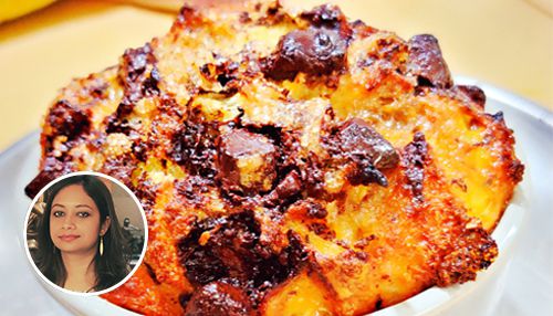 Here is a warm and crispy bread and butter pudding recipe with choco chips. This dessert will be relished by many sweet tooth lovers.